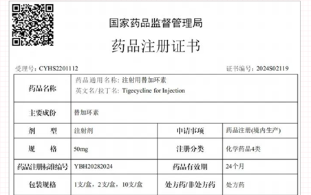 【普利制药招商】中美双报的注射用替加环素国内获批上市!该药已在多国申报注册,欢迎垂询合作!