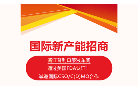 【招商:浙江普利国际新产能】浙江普利口服液生产车间通过美国FDA认证!诚邀国际CSO/CMO/CDMO合作,共拓全球市场
