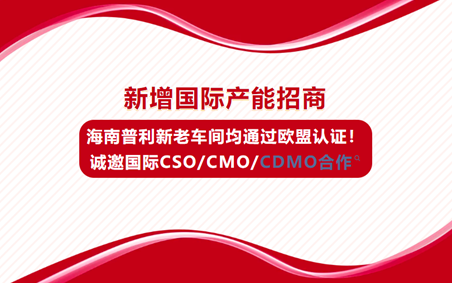 【新增国际产能招商】海南普利新老车间均通过欧盟认证!诚邀国际CSO/CMO/CDMO合作,共拓全球市场