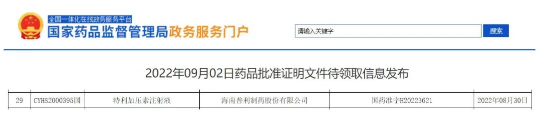【喜报】普利制药生产的特利加压素注射液在中国获批上市!